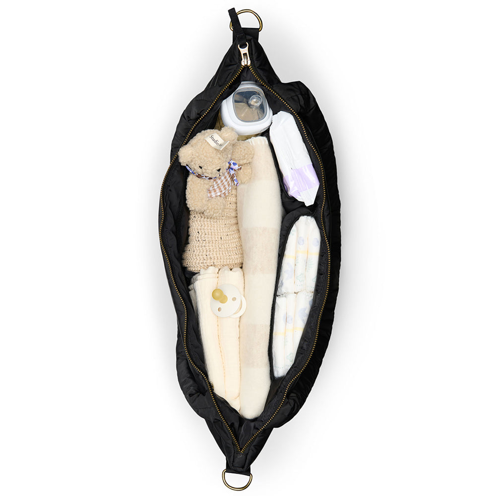 Mit dieser wattierten Wickeltasche von Studio Noos erleichterst du dir deinen Alltag und setzt gleichzeitig ein modisches Statement. Damit alles stets gut organisiert und jederzeit schnell zur Hand ist, verfügt die geräumige Tasche über mehrere Innenfächer für alles, was ihr unterwegs benötigt – von Windeln und Feuchttüchern über Babys Fläschchen bis hin zu Spielzeugen oder Wechselkleidung. Dank der seitlichen Ringe lässt sich das Modell ganz wunderbar am Kinderwagen befestigen. Das glatte Obermaterial ist pflegeleicht. Selbstverständlich ist die Tasche dank des zeitlosen Designs auch nach der Wickelzeit ein zuverlässiger Begleiter.