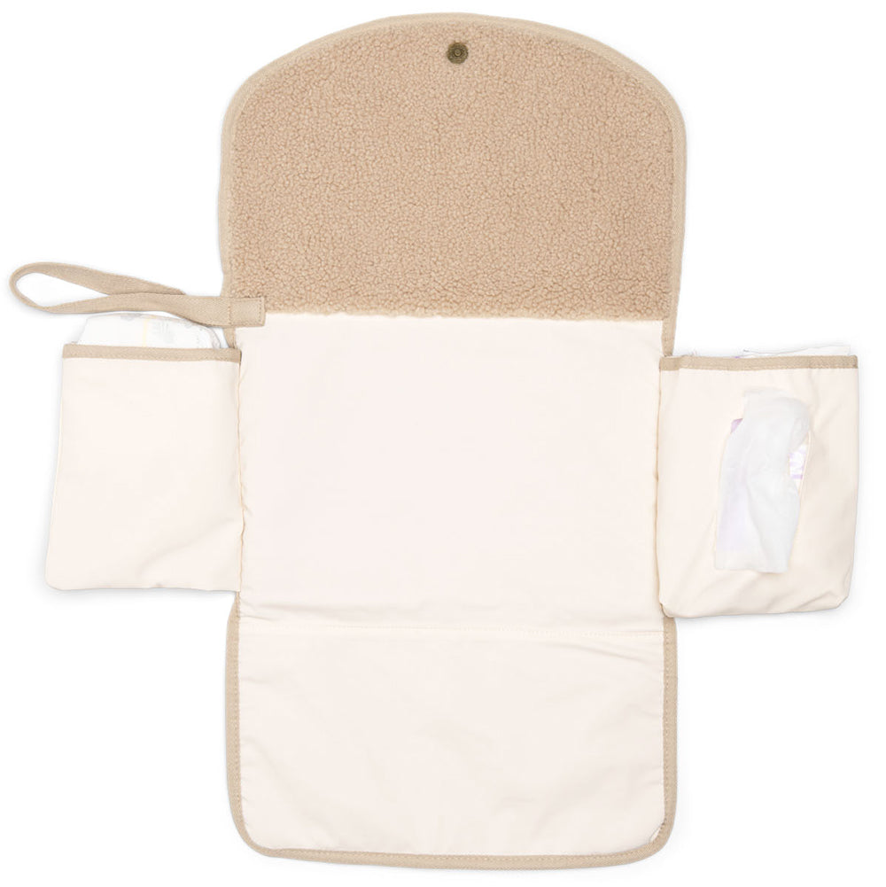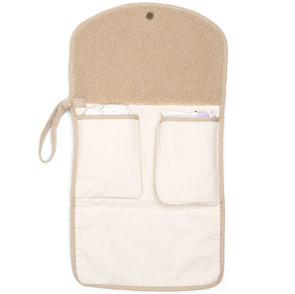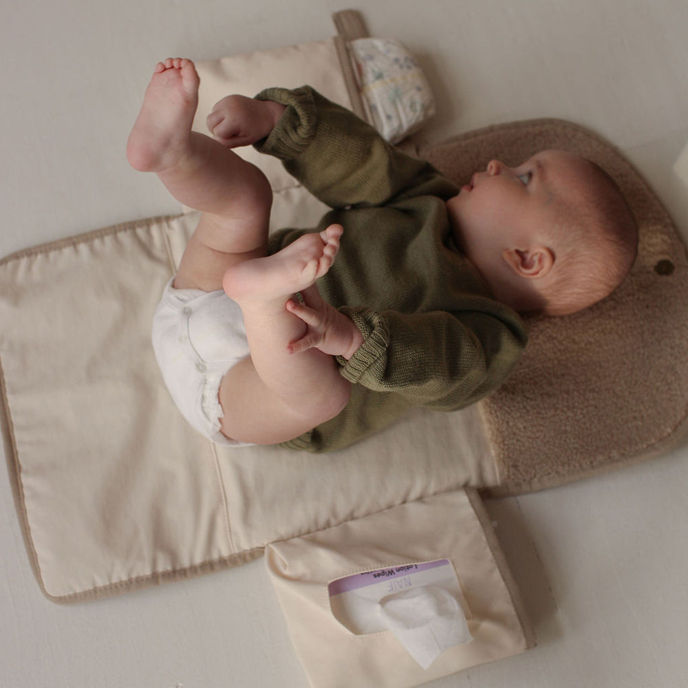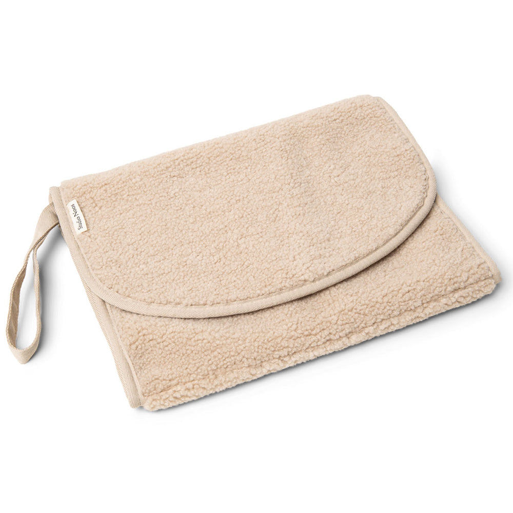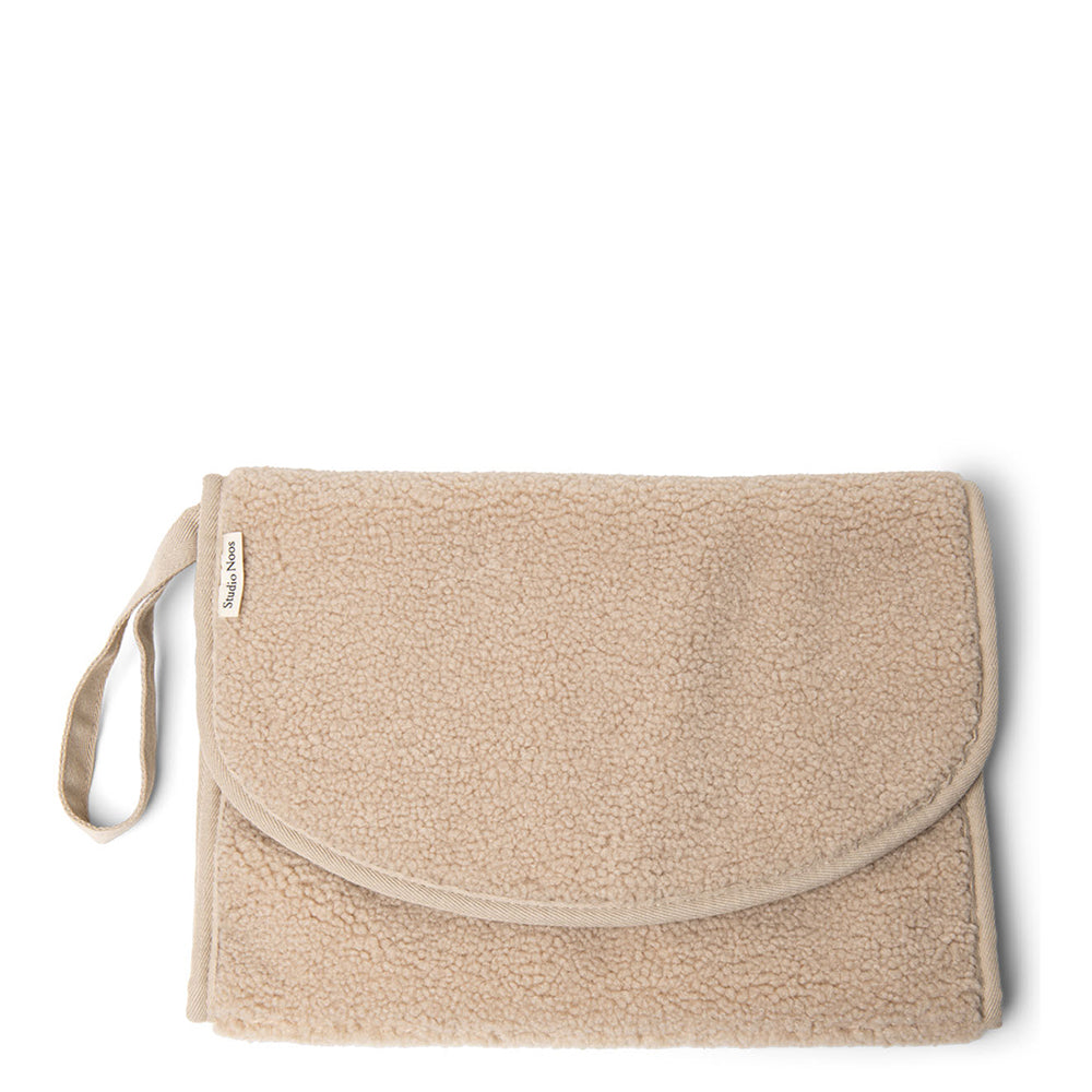 Diese stylische Wickelunterlage von Studio Noos ist der perfekte Mix aus Funktionalität und Wohlfühlfaktor. Gefertigt aus kuscheligem Teddy-Stoff aussen und einem wasserabweisenden Innenmaterial, bietet sie deinem Baby überall eine weiche, saubere und sichere Unterlage – ob im Café, im Park oder auf Reisen. Dank der kompakten Falttechnik und des praktischen Klettverschlusses lässt sich das Modell einfach zusammenklappen und in jeder Tasche verstauen. Ausserdem präsentiert es sich mit zusätzlichem Stauraum: Zwei integrierte Taschen bieten Platz für Windeln, Tücher oder kleine Pflegeprodukte – so hast du beim Wickeln alles Wichtige sofort griffbereit.