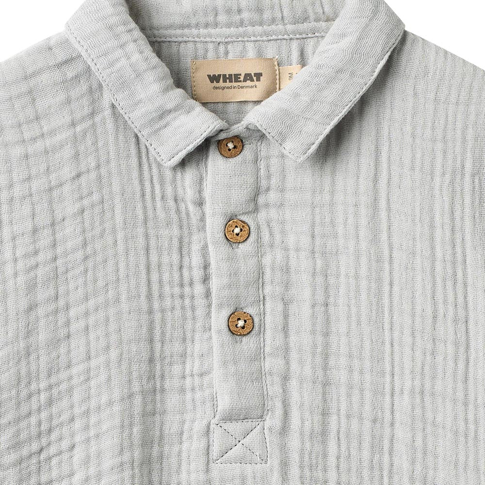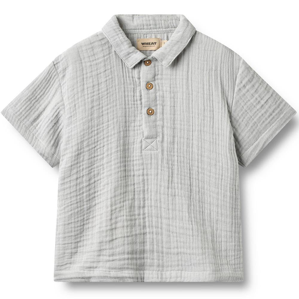 Kurzärmeliges Hemd aus weicher Bio-Baumwollgaze von WHEAT. Diese Hemd eignet sich perfekt für besondere Anlässe und gemütliche Tage. Das Hemd ist angenehm zu tragen, hat eine lockere Passform und wird bis zur Hälfte geknöpft. Es verleiht jedem Outfit einen klassischen Touch und lässt sich ideal mit einer Hose und einem Strickpullover kombinieren.