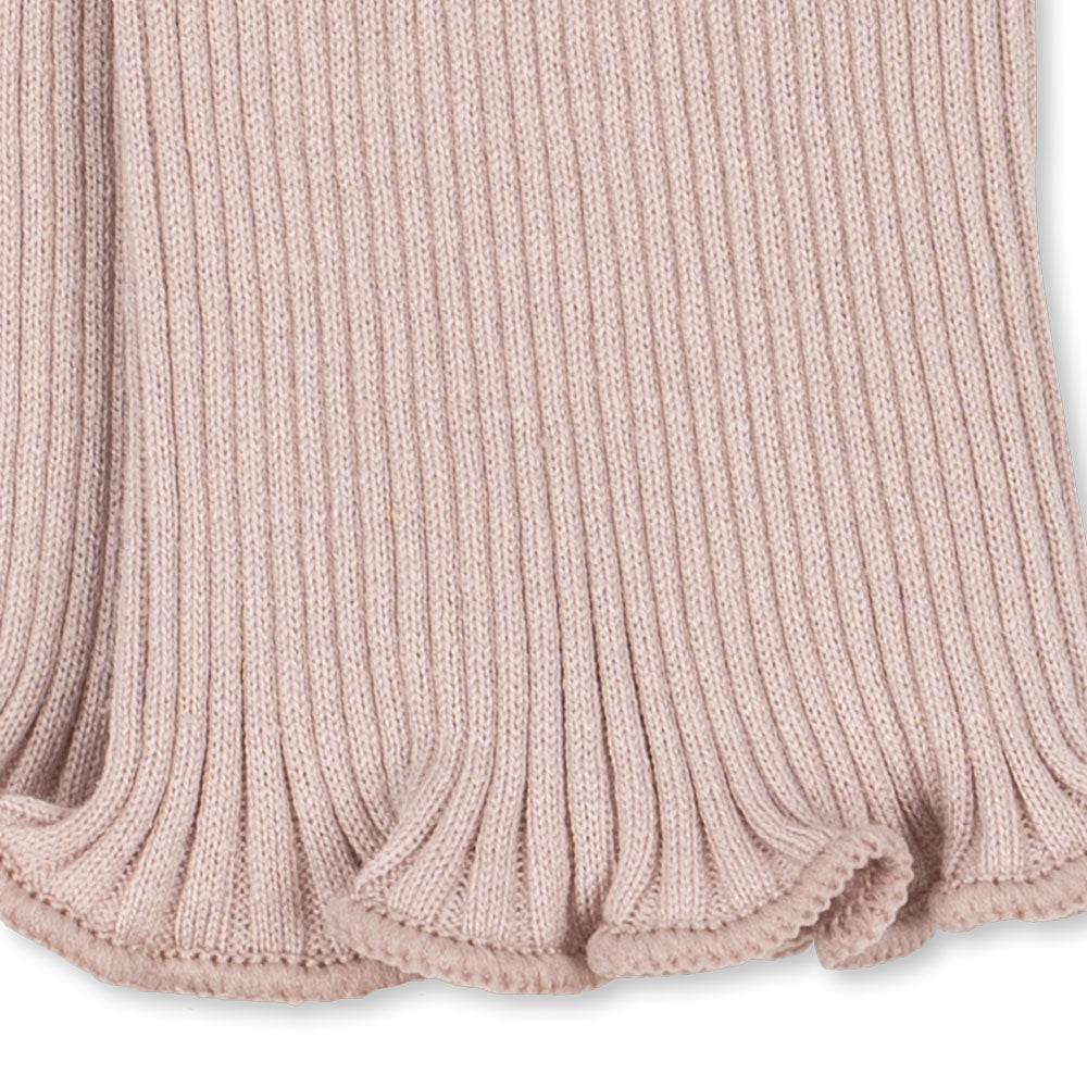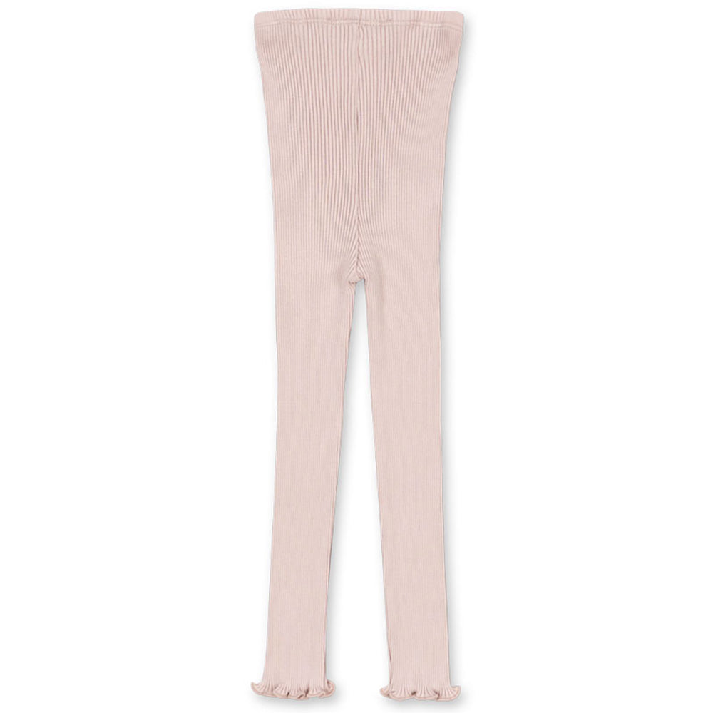 Luxuriöses Baumwoll-/Seiden Ripp-Leggings von Konges Sløjd aus einem flexiblen Rippstrick mit Rüschensaum. Die Leggings sind ein aussergewöhnlich weiches und bequemes Basic für jeden Tag.