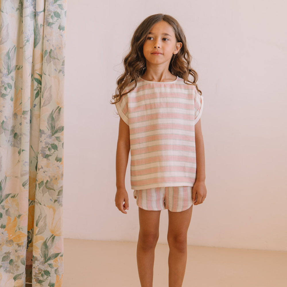 Shorts Georgette Rayures Fraise Pistache