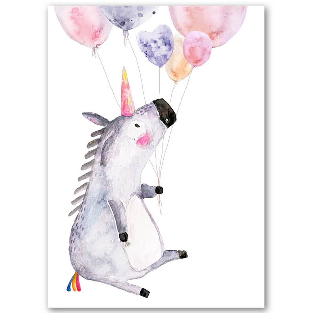Postkarte Einhorn mit Luftballons