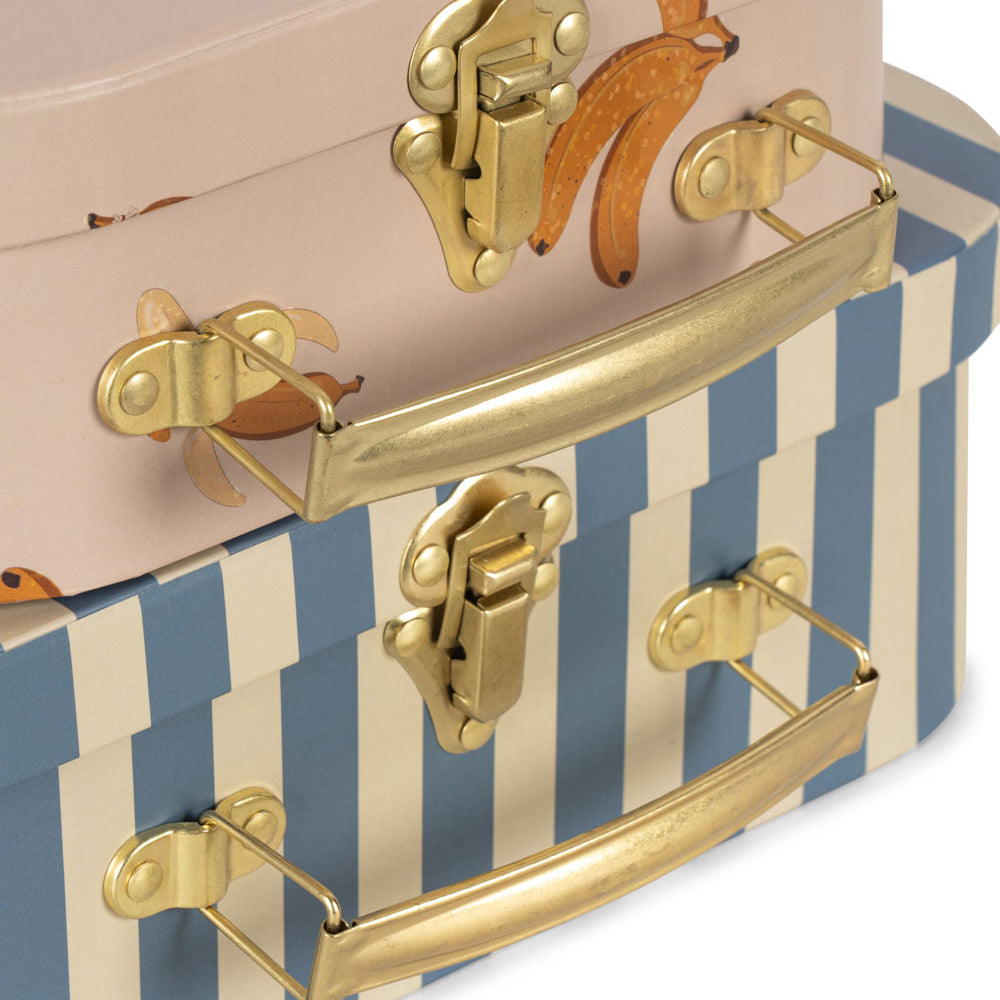 Süsse Aufbewahrungs- / Puppenkoffer von Konges Sløjd aus FSC zertifizierter Pappe mit hübschem Print. Der grosse und der kleine Koffer sind ideal für grössere und kleinere Unternehmungen mit der Puppe oder für die Aufbewahrung von kleinen Schätzen.