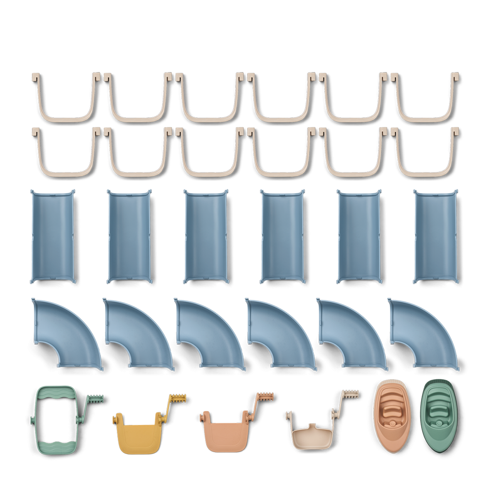Die Wasserstrasse von Liewood lädt Kinder zu fantasievollem Spiel mit Wasser ein. Das durchdachte Stecksystem ermöglicht es, individuelle Wasserläufe zu bauen, umzubauen und immer wieder neu zu gestalten. Beim Giessen, Lenken und Beobachten des Wassers werden spielerisch Motorik, Kreativität und logisches Denken gefördert. Dank des robusten Materials eignet sich die Wasserstrasse ideal für den Einsatz im Garten, auf dem Balkon oder in der Badewanne. Ein durch und durch langlebiges Spielzeug, das an warmen Tagen für langanhaltende Freude sorgt.