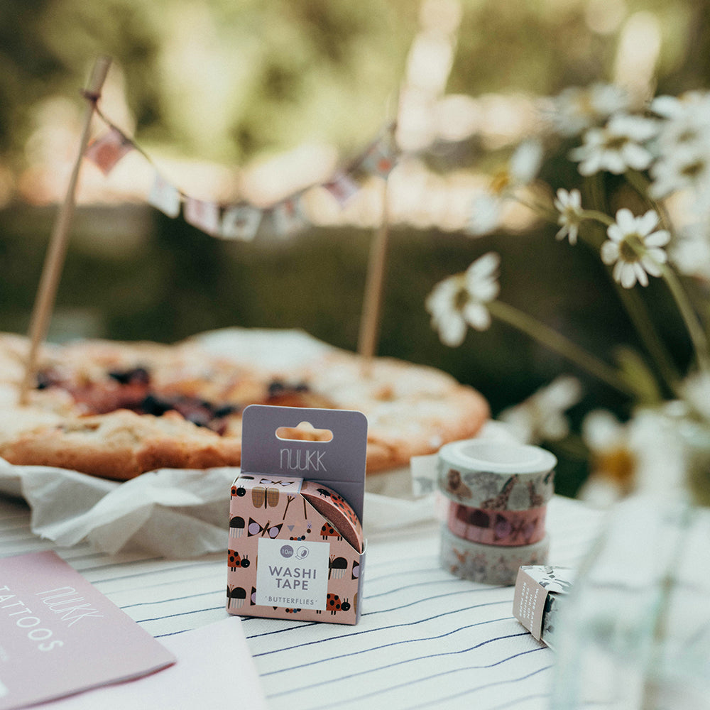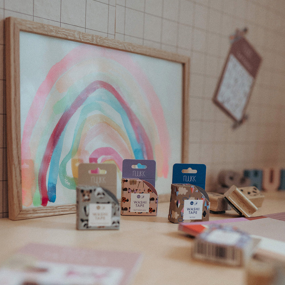Washi Tape von nuukk mit wasserbasierter Tinte auf zertifiziertes Reispapier gedruckt. Das Washi Tape ist selbstklebend und wieder ablösbar und kann ganz einfach per Hand gerissen werden. Für Klein und Gross der Hit zum gestalten und basteln.