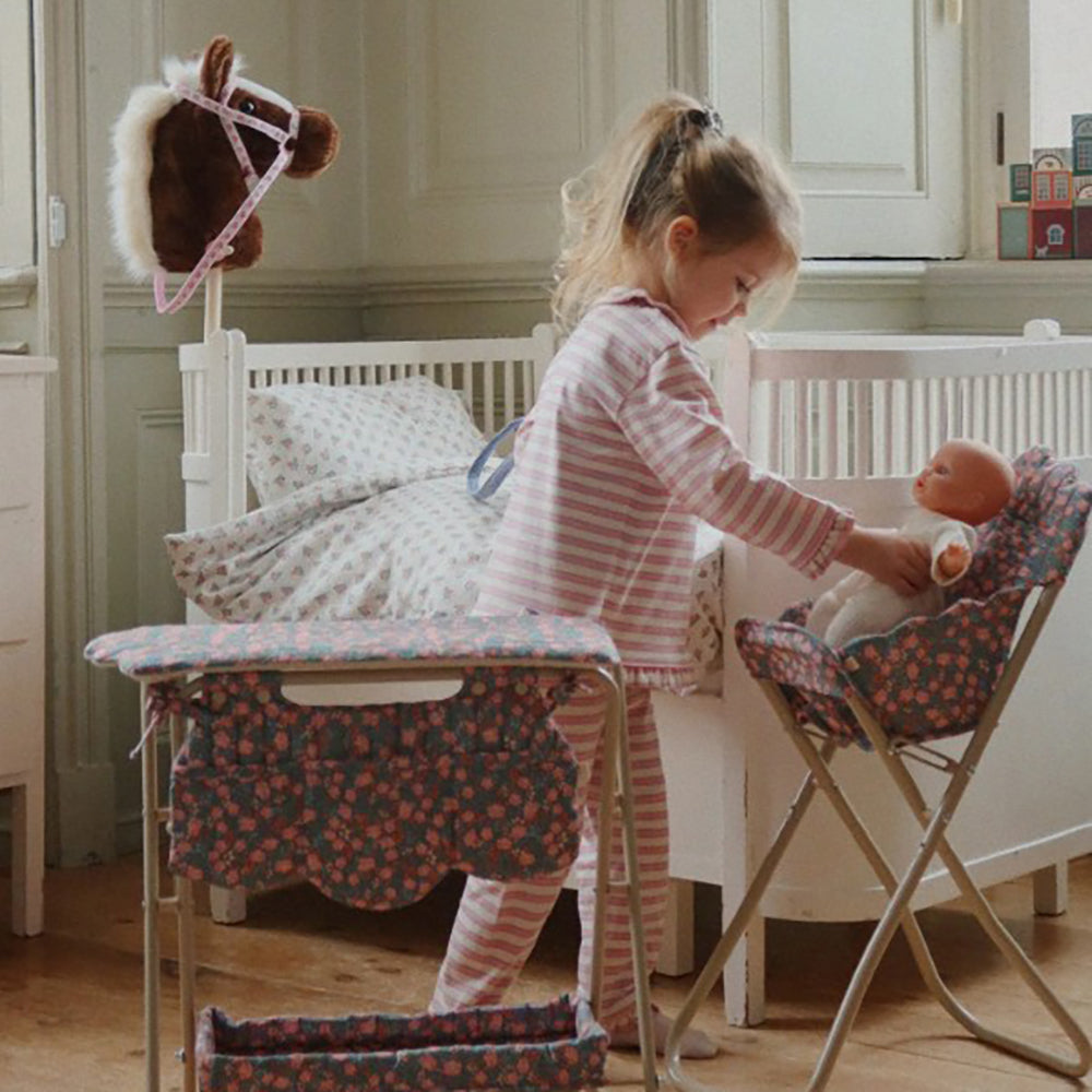 Das Steckenpferd von Konges Sløjd sorgt für grenzenlosen Spielspass und begleitet Kinder auf ihren fantasievollen Abenteuern. Der weiche Pferdekopf ist fest mit einem stabilen Holzstab verbunden, an dessen Ende sich kleine Räder befinden. Dadurch lässt sich das Steckenpferd leicht lenken und sicher bewegen. Das 90 cm grosse Steckenpfert ist der perfekte Begleiter für Kinderabenteuer, fördert die Bewegung, entwickelt die Fantasie und sorgt für jede Menge Spass. Das perfekte Geschenk für jeden kleinen Pferdeliebhaber.